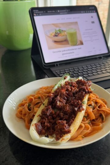 Een fris en licht gerecht: gevulde paksoibladeren met gekruid kipgehakt en glasnoedels. Een smaakvol pakketje op je bord!