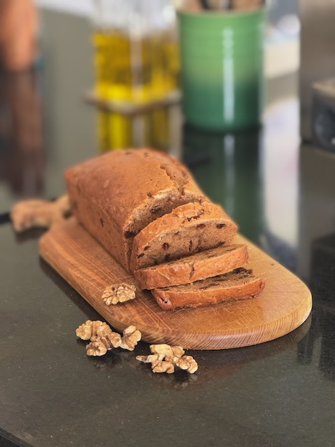- Meng het bakmeel met het bakpoeder, de basterdsuiker, koekkruiden, sinaasappelrasp en 1⁄2 theelepel zout. Roer de melk en het sinaasappelsap erdoor en roer tot een dik beslag. Meng de noten en zachte rozijnen erdoor en schep het beslag in de vorm.
