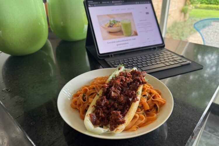 Een fris en licht gerecht: gevulde paksoibladeren met gekruid kipgehakt en glasnoedels. Een smaakvol pakketje op je bord!