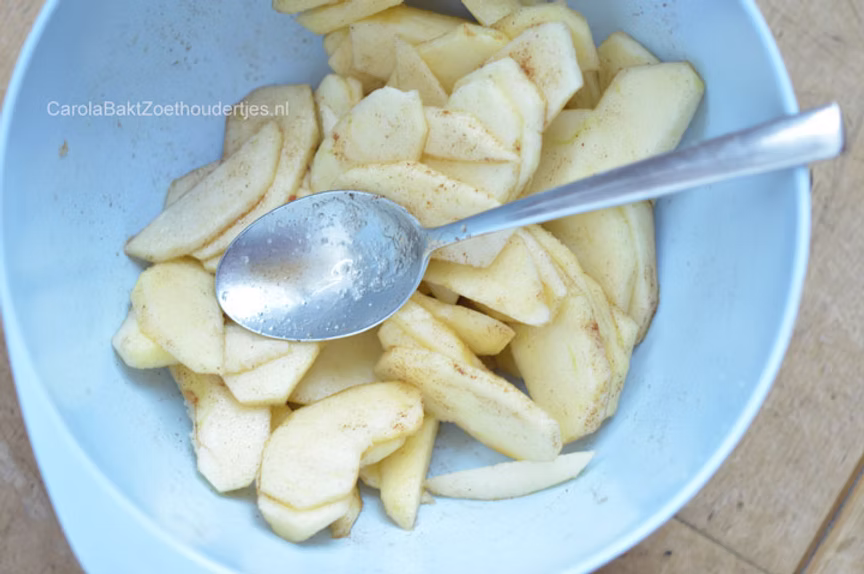 • Meng de appelpartjes met het kruidnagelpoeder, de nootmuskaat en de whiskey. Ik gebruikte iets minder whiskey, 3 eetlepels, omdat mijn jongste zoon dit echt niet lekker vindt. Proef en schat zelf in hoeveel jij wilt gebruiken. Voeg 2-3 eetlepels suiker toe naar smaak.