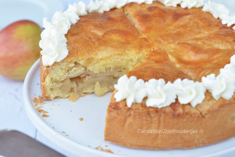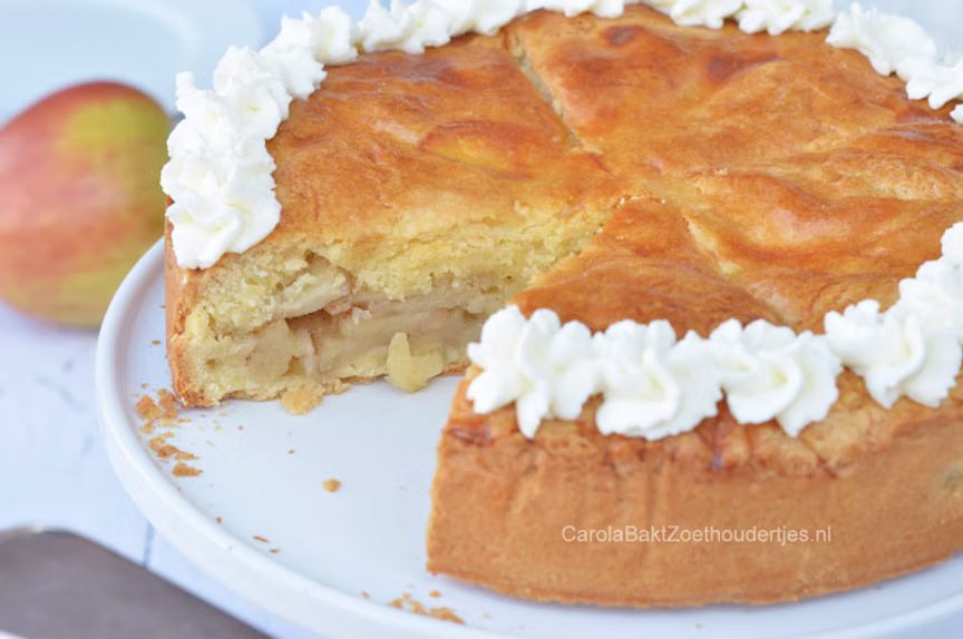 • Om de taart iets te verwennen, spoot ik kleine toefjes langs de rand. Slagroom en appeltaart zijn vriendjes!