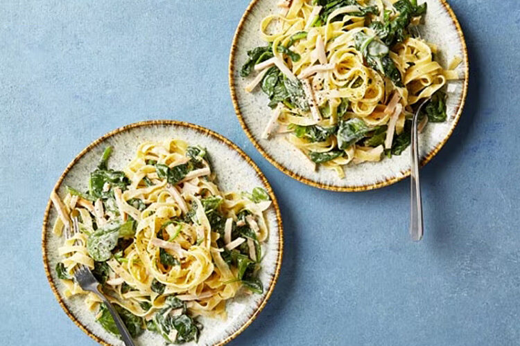 Een verrukkelijke pasta met spinazie en kip, afgetopt met kruidenkaas. Met dit smaakvolle gerecht weet je zeker dat de hele familie aan tafel schuift.