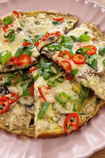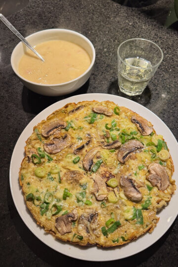 Crispy omelet op rijstvellen met romige witlofsoep
